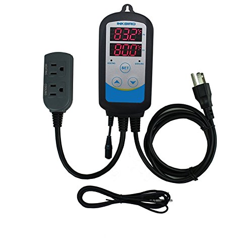 Inkbird Pre-Wired Programmable Outlet Thermostat ITC-310TS+1.97'' Replaceable NTC-5cm Probe AC1200W 100~240V Digital Dual Stage Temperature and Time Controller Timer Heating & Cooling