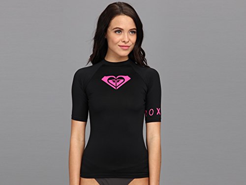 Roxy Juniors Whole Hearted Short Sleeve Rash Guard, Black, 2