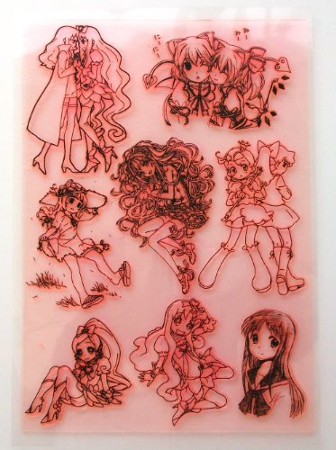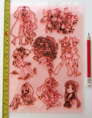 -. Title : Anime Girls (7"x10") Large Sheet Clear Stamps / Manga, Kawaii, Neko