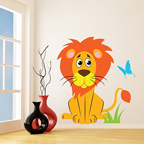 -. Title : (35'' x 39'') Vinyl Wall Kids Decal Lion with Butterfly / Art Home Baby Animal Tiger Decor Sticker / Child Kids Room Decoration + Free Random Decal Gift!