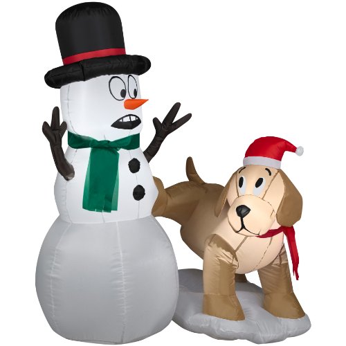 - There is a flash of yellow on the snowman where the dog has lifted his leg.