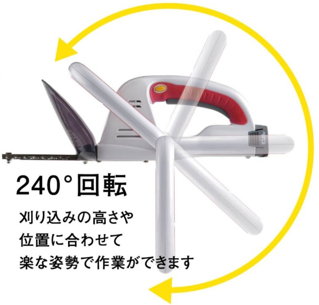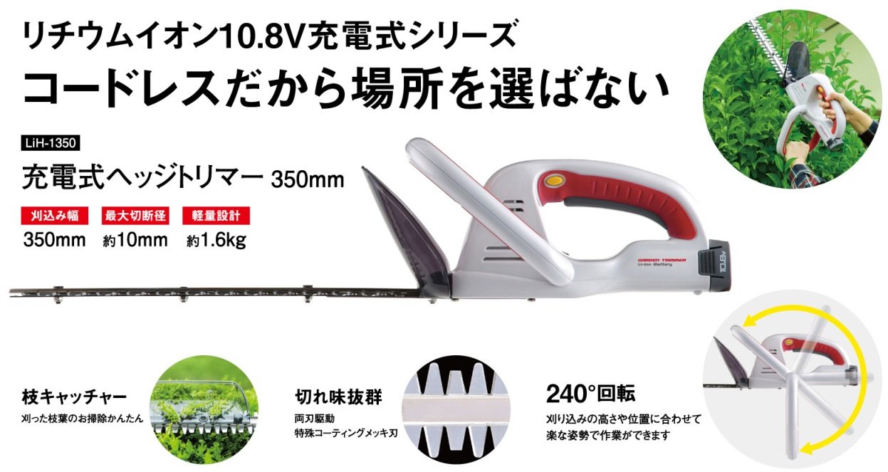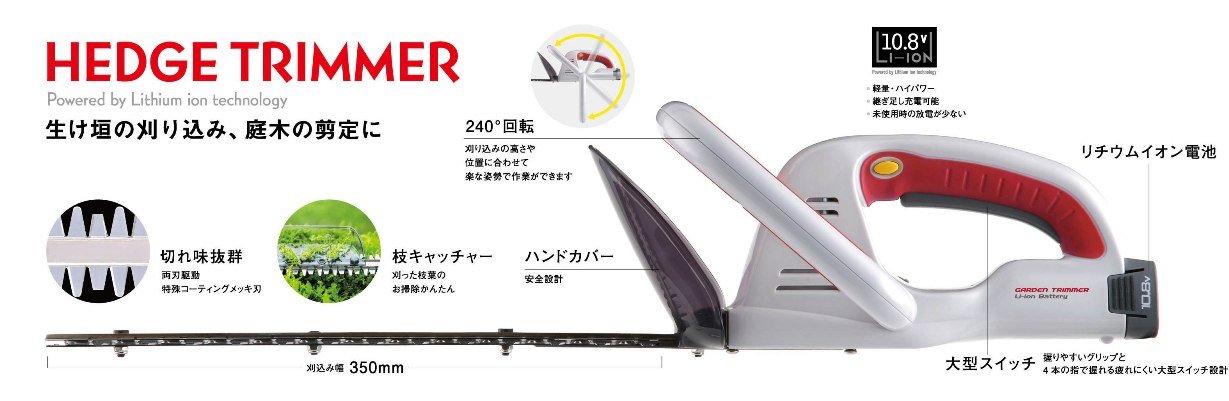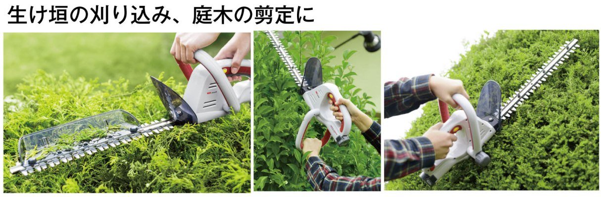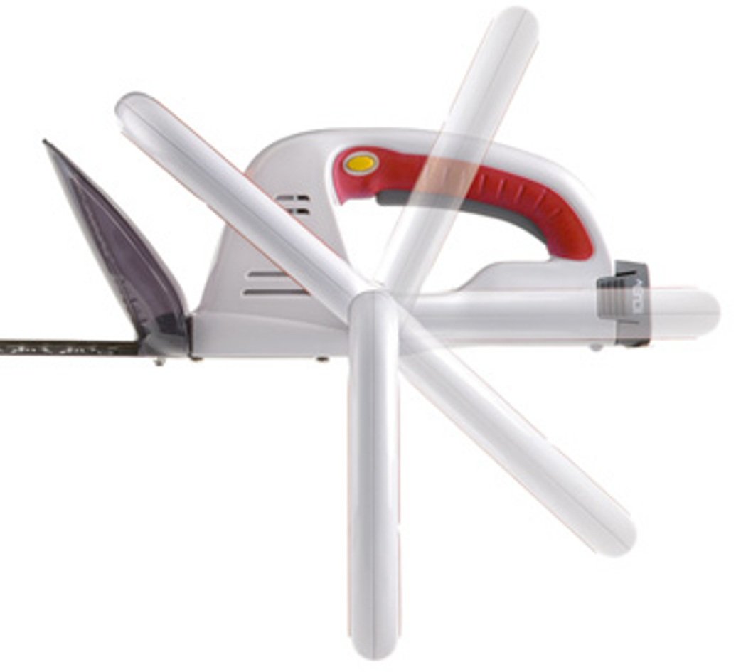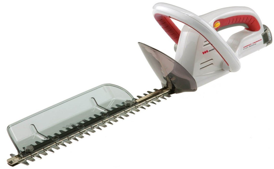 Rechargeable hedge trimmer.