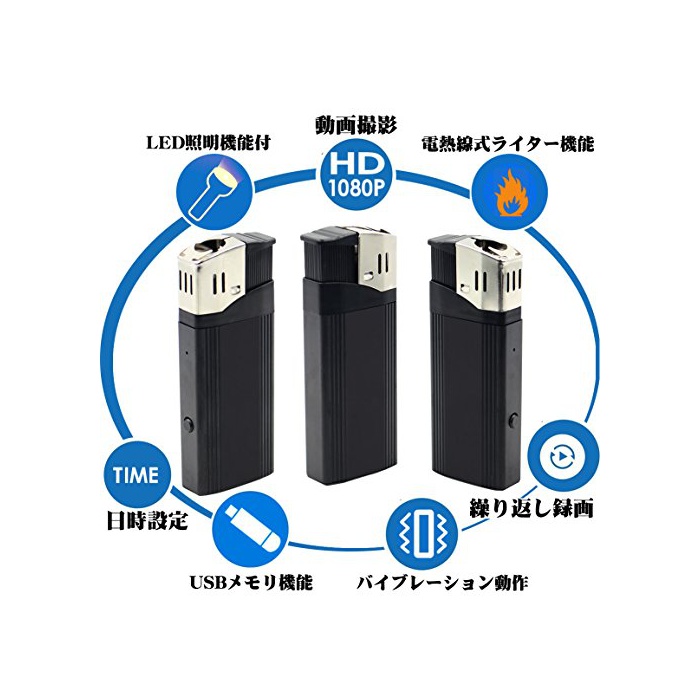 원본상품명: SeiTang 1080P HD高質ライタ型しカメラ 小型ビデオカメラ 監視カメラ 繰り返し機能付 電熱線式ライタ機能&LED照明機能付