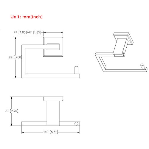 Leyden TM SUS304 Stainless Steel Wall Mounted Toilet Roll Paper Holder Rustproof Bathroom Tissue Roll Hanger, Square Type Brushed Finish