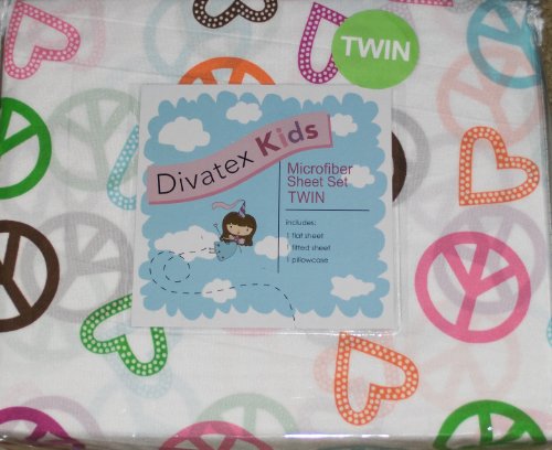 Divatex Kids Peace and Polka Hearts Microfiber Twin Sheet Set
