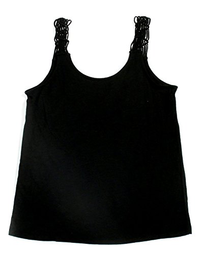 HUE SOLID SLEEP TANK WITH MACRAME STRAPS, BLACK, S