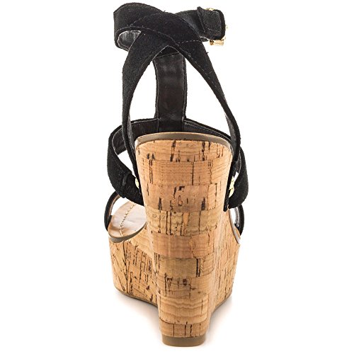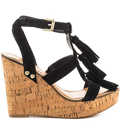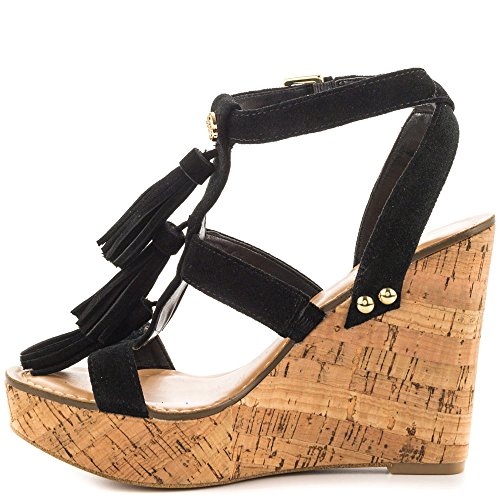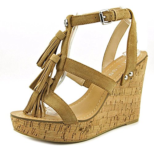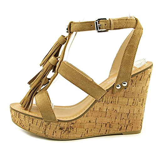Studio : Guess Footwear Publisher : Guess Footwear Binding : Apparel Product Description Simplicity at its best, the Heya is a versatile go-to for all of your wedge needs. Made with rich suede leather. Adjustable buckle closure. T-strap silhouette boasts layered fringe detail. Polished gold-tone hardware accents. Open toe. Man-made lining and insole. Cork platform and wedge. Man-made sole. Imported. Measurements: Heel Height: 4 1?4 in Weight: 10 oz Platform Height: 1 1?2 in Product measurements were taken using size 8, width M. Please note that measurements may vary by size. 0