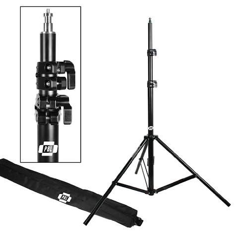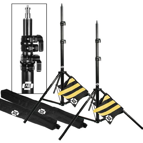 PBL Light Stands 10 Foot, Pro Heavy Duty Spring Cushioned, All Metal Locking Collars, Set of 2 with Carry Bags Black Finish by PBL