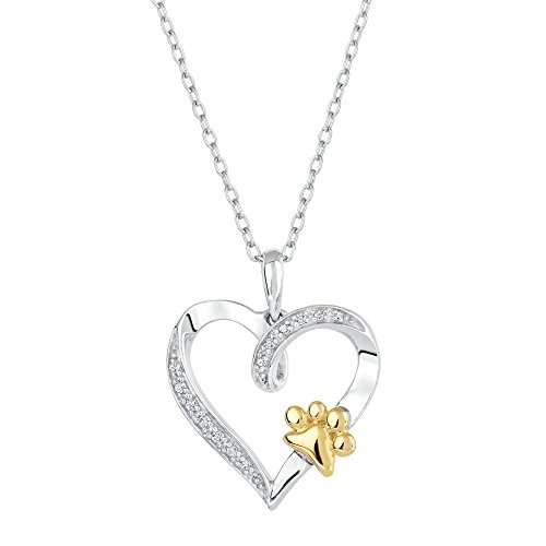 From the ASPCA(R) Tender Voices(R) Jewelry Collection, this sterling silver heart pendant features round diamond accents and a 10k yellow gold paw