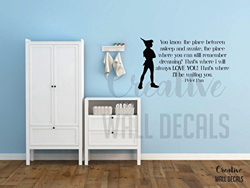 -. Binding : Kitchen -. Brand : CreativeWallDecals -. EAN : 0740016392361 -. Feature : ATTENTION!!! This is a product by CREATIVEWALLDECALS® Company . DON'T WRITE A FEEDBACK IF YOU BOUGHT THIS PRODUCT FROM CHINA. CreativeWallDecals® is a registered trademark and the only authorized seller of CreativeWallDecals® branded products . OTHER SELLERS ARE SELLING FORGERY. / Please check to see that it is "Sold by CreativeWallDecals" before you click Add to Cart . We can't guarantee quality of decals from other sellers . We use high quality 3M, Oracal or FDC vinyl . We don't use cheap clear plastic . CreativeWallDecals® - MADE IN USA only. / MADE IN USA . FAST SHIPPING FROM USA via USPS mail. CreativeWallDecals® produce decals in USA and ship from USA. / Actual size usually from 22x22" (for square and circle designs) to 22x35" . Please message us if you would like a custom color from our color's chart after purchasing, otherwise we ship it in color shown on picture. / Easy to Apply & Removable!!! You will get the instruction! We can make the design LARGER up to 80" . Please message us to know how to buy it. -. IsAutographed : 0 -. Label : CreativeWallDecals -. Manufacturer : CreativeWallDecals -. ProductGroup : Home -. ProductTypeName : HOME -. Publisher : CreativeWallDecals -. Size : Size usually 22" X 35" -. Studio : CreativeWallDecals -. Title : Vinyl Wall Decal Sticker Peter Pan Quote Kids Nursery Baby Bedroom Story r1906 -. UPC : 740016392361