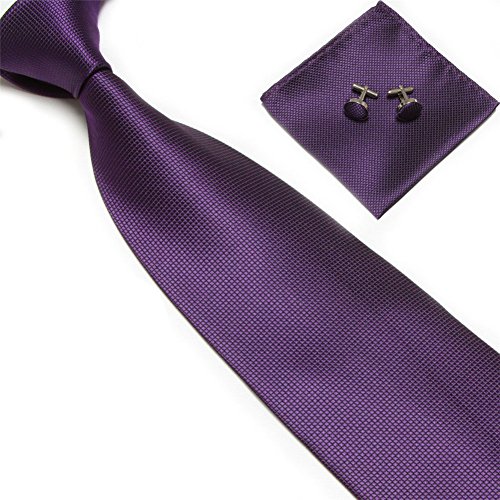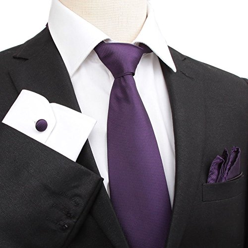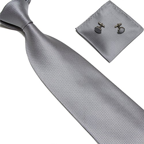 Men's Tie Set Checked Necktie Handkerchief Cufflinks Classic Business Gift w/Box