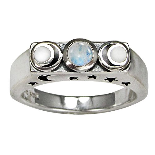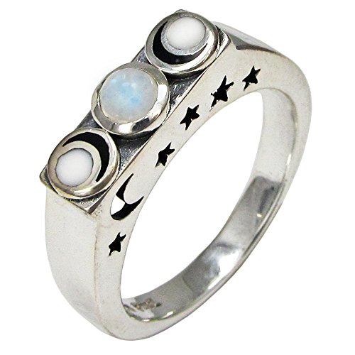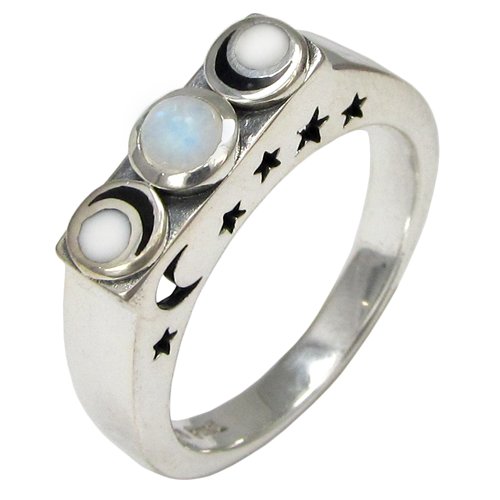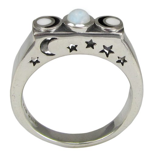 -. Binding : Jewelry -. Brand : Moonlight Mysteries -. Department : womens -. Feature : Made of .925 pure sterling silver / Available in sizes 4-15 / Ring exchanges are available if you need to swap a size / Top of band design measures 5/8 inch (1.5 cm) by 3/16 inch (0.5 cm) -. Model : PS-TR-3704 -. MPN : PS-TR-3704 -. PartNumber : PS-TR-3704 -. ProductGroup : Jewelry -. ProductTypeName : FASHIONRING -. Title : Sterling Silver Moonstone Lunar Phase Ring with Cut out Stars and Moon (sz 4-15)