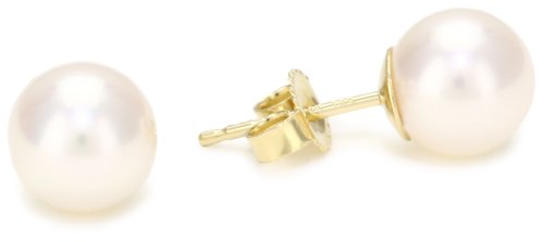 These 14k yellow gold 7mm Akoya pearl stud earrings are a classic addition to any jewelry collection.