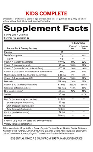 -. Feature : Non GMO / Each serving of delicious gummies includes a full multivitamin, Omega 3s EPA and DHA, 600 IUs of Vitamin D3, and 67 mcg of B12 / 100% Non-GMO; No High Fructose Corn Syrup, Artificial Sweeteners, Colors, Flavors or Preservatives; Gluten and Casein Free / Our USP-certified fish oil comes from small fish sources, limiting mercury risk and avoiding the depletion of salmon or tuna populations / Made in California with love; kids chew 4 gummies daily