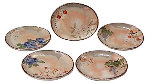아이트 쿄야키 기요미즈야키준 산요금화명 전 (5점 세트) 사계절 풀꽃 PSS471