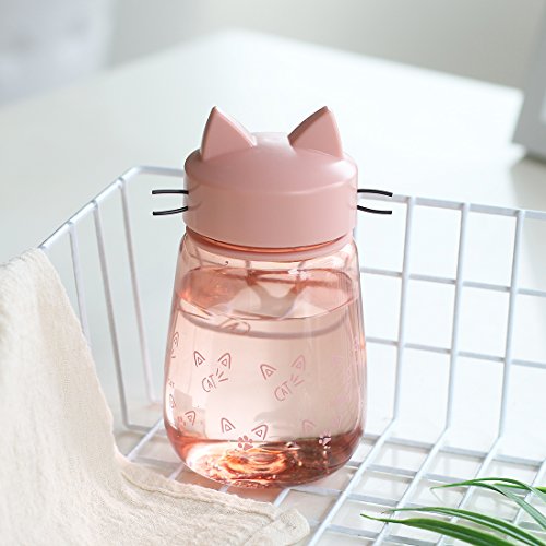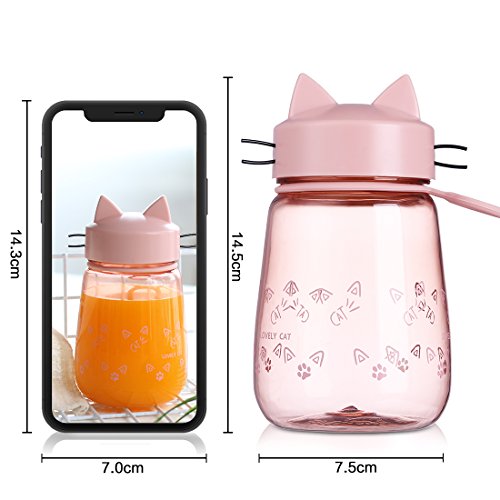 - [CUTE DESIGN & CONVENIENT]: This cute cat water bottle is a ideal choice for home, school, travel, sport, portable design to carry around easily with the silicone ring.