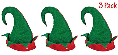 Set of 3 Christmas Santa Felt Elf Hats, Great Christmas Party Costume, By 4E’s Novelty