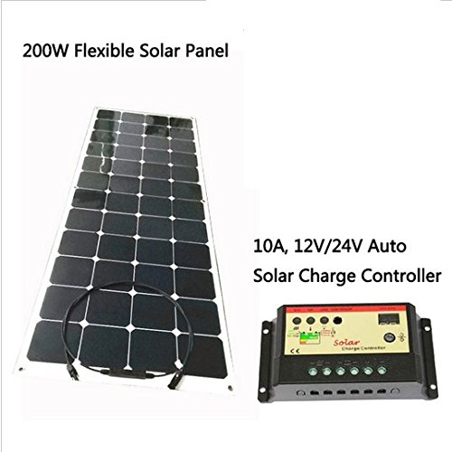 -. Feature : Package List 1, Flexible solar panel 200w 18v, 1445*785*3mm, 1pcs.2, Cables&MC4 Connectors On back of Solar Panel or on front of the panel, pls decide and let us know!!!3, 20A, 12V/24V Auto Solar Charge controller.FEATURES; High efficiency Flexible(bendable) solar panel; High efficiency bendable solar module adopts the highest efficiency cell in the world from USA, with efficiency up to 20% or highter, which enable 25-30% higher power generation than / the conventional PV modules at the same size.By adopting the back contact technique,the cell can be coated with the flexible materials and finally forms the high efficiency flexible solar panel.This kind of solar panel can be widely used in the field of Electric Golf Car,Patrol Car,Travel Tourism Car,Yacht,Roof Power generation,Backpack,Tent and so on.APPLICATIONS; Solar power stations; / Rural electrification, Small home power systems; Power supply for traffic, security, gas industry; 12V battery charging system; Other industrial and commercial applications;Peak power; 200W; Maximum power voltage; 18V; Maximum power current; 11.11A; Open circuit voltage:21.24V; Short circuit current:12.22A; Maximum system voltage:1000V; / Solar cells efficiency:23%; Module efficiency:18%; Type of solar cell; polycrystalline silicon; Mono-crystalline silicon ; Quantity and arrangement of cells:72pcs ; Solar cells specification:125*125mm; Temperature coefficient of Pm:-0.45%/degree; Temperature coefficient of Voc:-0.35%/degree; Power tolerance:+-5%; Temperature coefficient of Isc:+0.05%/degree; / Operating temperature range:-40degree~90degree; Standard test conditions:Am1.5 25degree 1000W/m2; Net Weight:4Kg; Size of module:1080*805*3mm; Gross weight:5.6KG; Quantity of Packing and size; Product Structure; PT++EVA +Solar Cell+EVA+TPT+ general international standard junction box; Type of Junction box; General international standard junction box