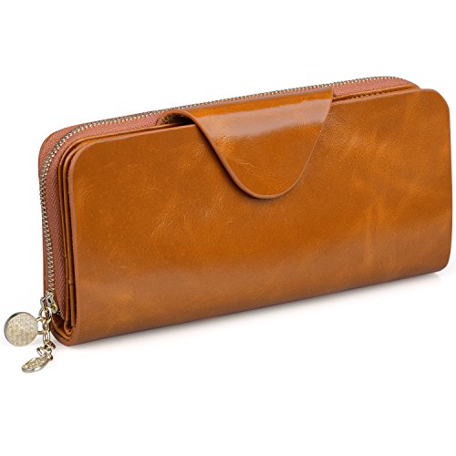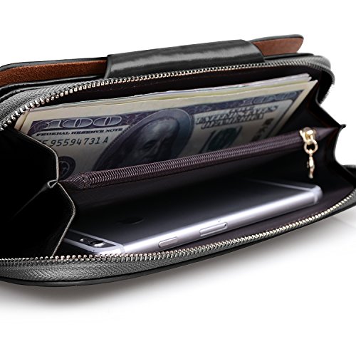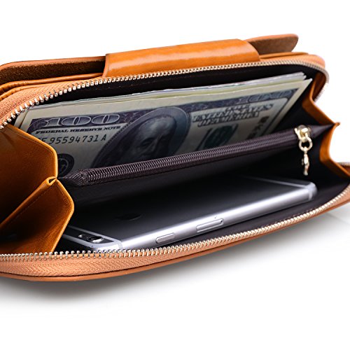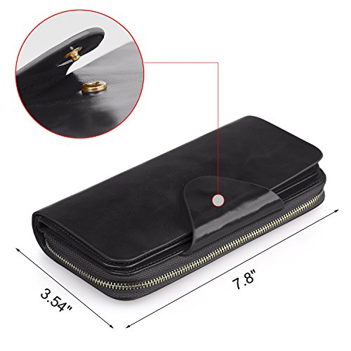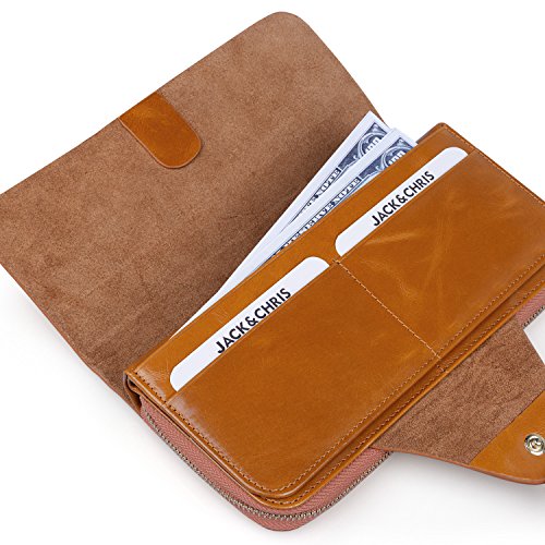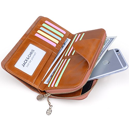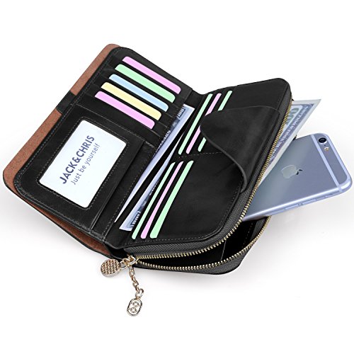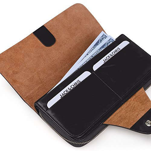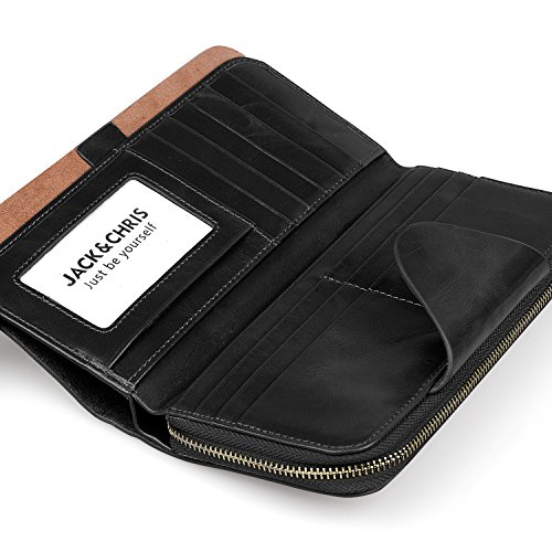 -. Feature : 100% genuine leather / Size: (LxH) 7.5 x 3.5 inch / 19 x 9 cm / 11 credit card pockets,1 zipper pocket,3 bill pockets,1 note slot,Can fit 5.5 inch smartphone / Great organizer wallet for women daily use / 【Jack&Chris】is a trademark registered in the US, UK and other countries. Any unauthorized sellers will certainly bear the legal consequences of Copyright Infringement.