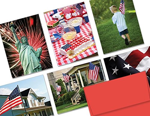 Patriotism - 36 Note Cards - 6 Designs - Blank Cards - Red Envelopes Included