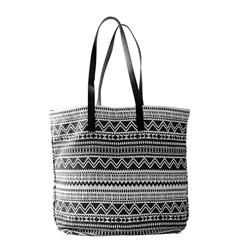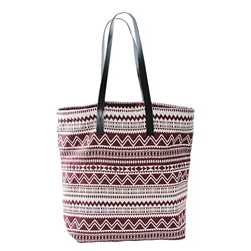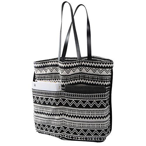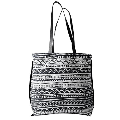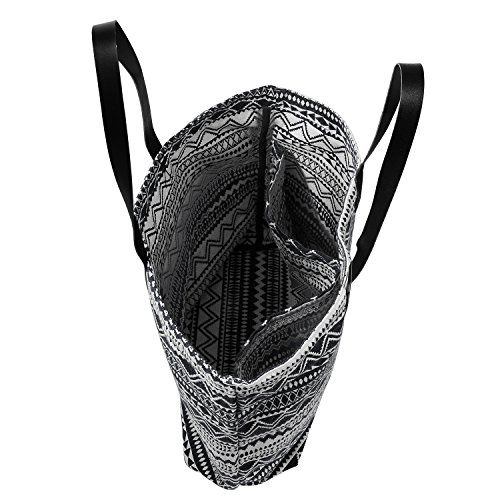 G-LIFE Women's Fashion Genuine Leather Chevron Pattern Beach Tote Handbag 3 Colors (Black)