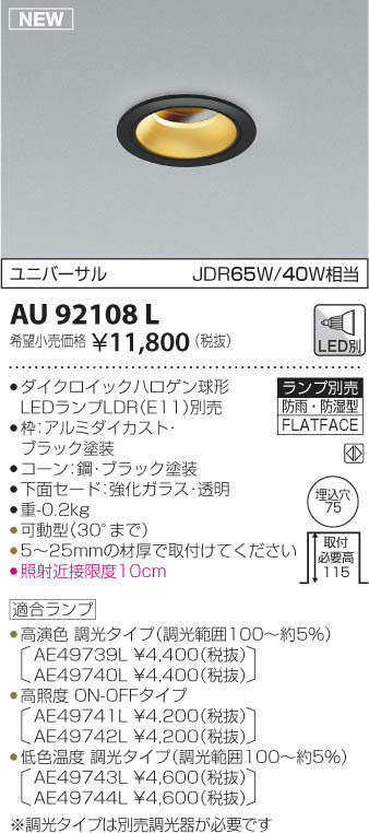 ●適合ランプ 高演色 調光タイプ(調光範囲100~約5% AE49739L \4,400(税抜)AE49740L \4,400(税抜))