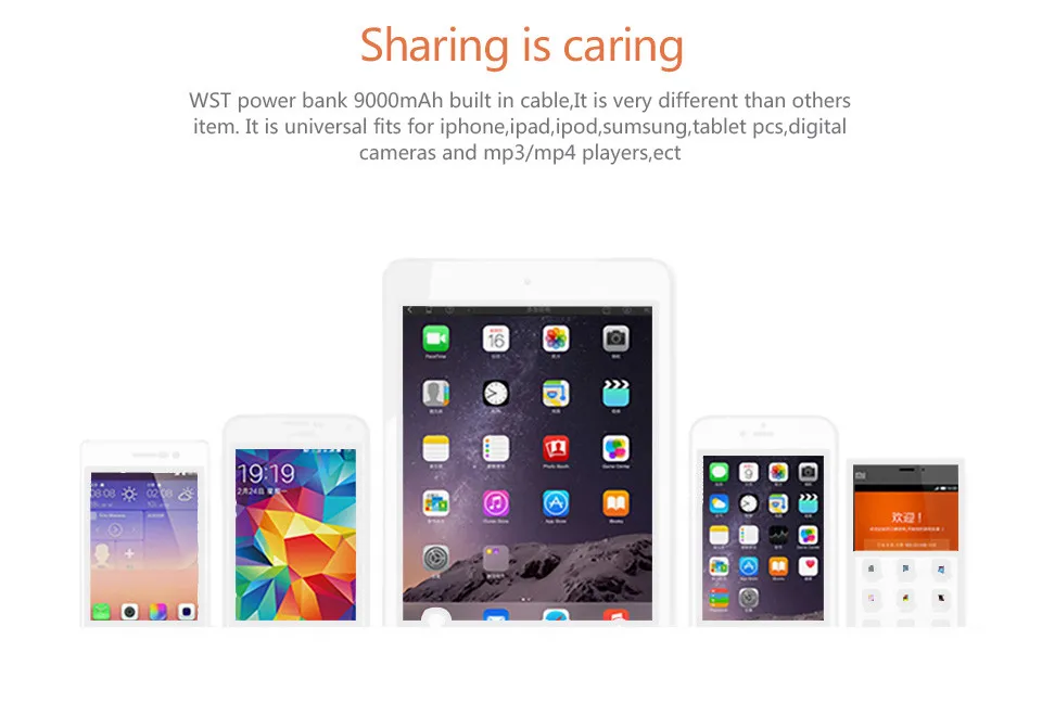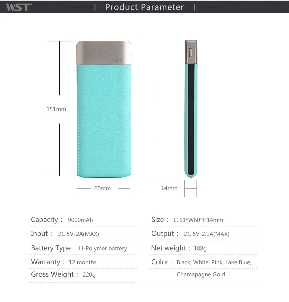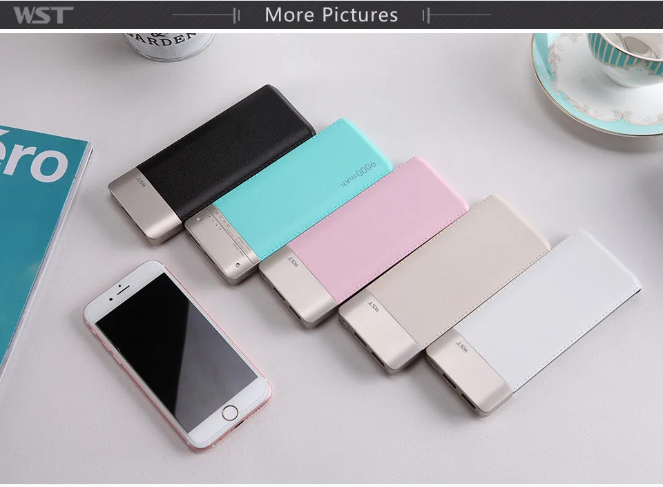 WST Powerbank 9000mAh External Slim Polymer Battery for mobile phones Double Usb for iPhone 7 5 5S 6 6S plus xiaomi