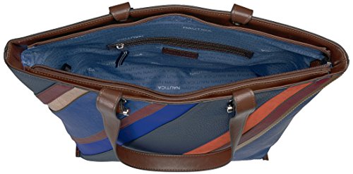 Bring your wardrobe to life with the Nautica banyan patchwork large tote. This is the perfect tote for everyday use. With ample amount of space, a top zip closure, double shoulder straps, and interior compartments to keep you organized, you'll never want to use another bag again