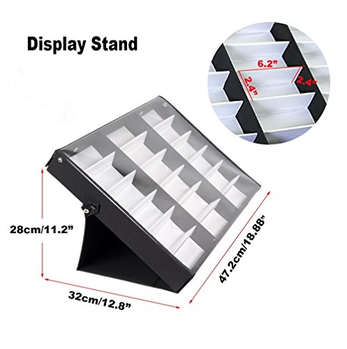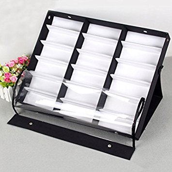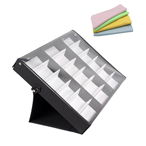 haoun 18 Slot Sunglasses Storage Case Eyeglasses Stand Display Tray Watch Organizer Box + Cleaning Cloth