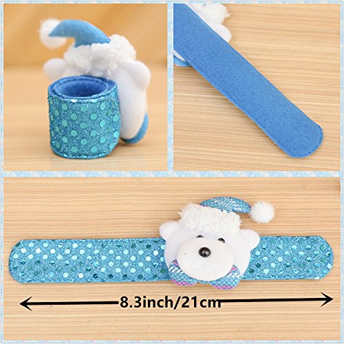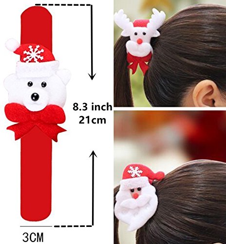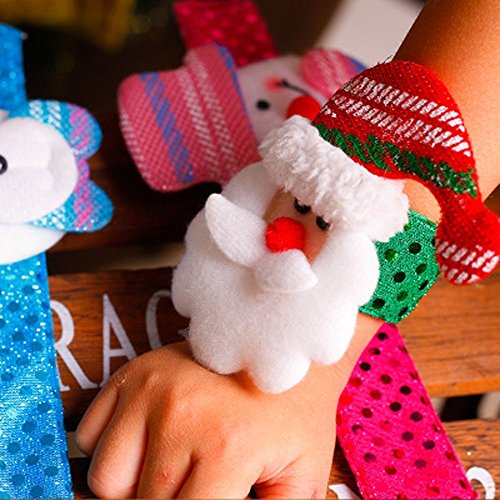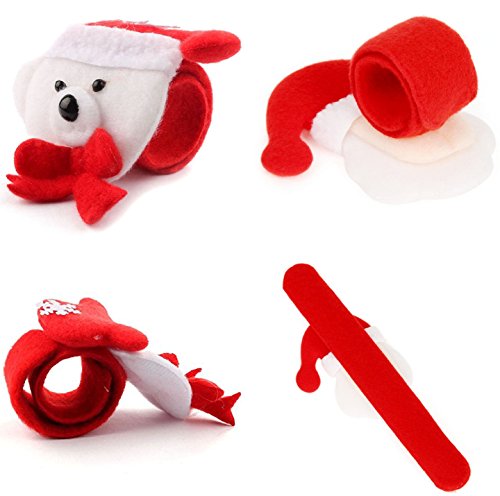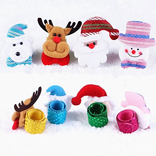 Easy to Wear: Just snap the bracelet against your wrist and it fastens instantaneously with a snapping action! And you can remove it easily. Package Includes:? 12 x slap wristbands ---4 Pcs Red Slap Bracelet in 4 design: Claus, Reindeer, Snowman, Bear ---8 Pcs Paillette Slap Bracelet in 4 design: Claus, Reindeer, Snowman, Bear 0