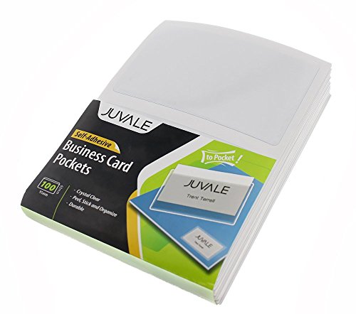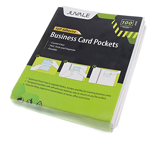Business Card Plastic Sleeves - Self Adhesive Poly Pockets Peel and Stick Business Card Holders - Top Load Card Holders - 100 Pack