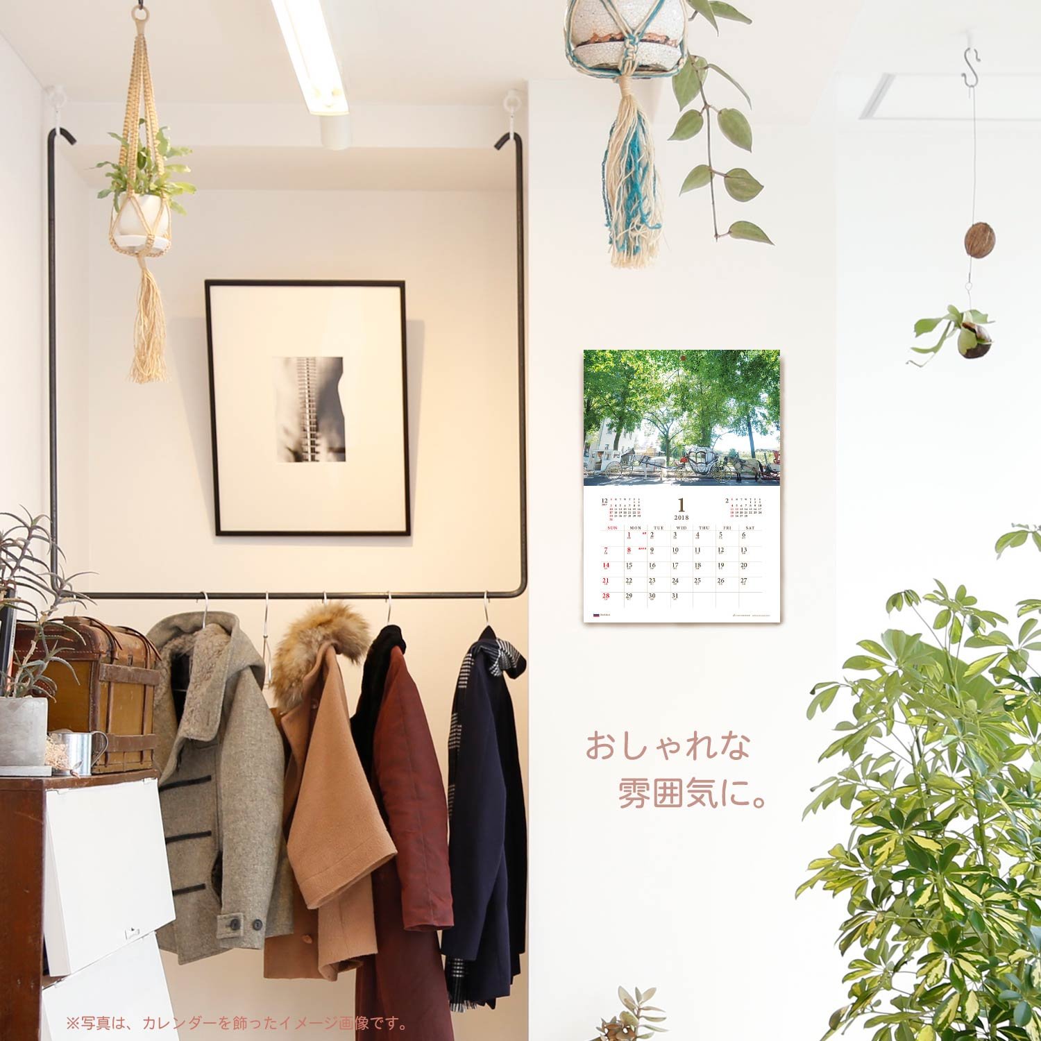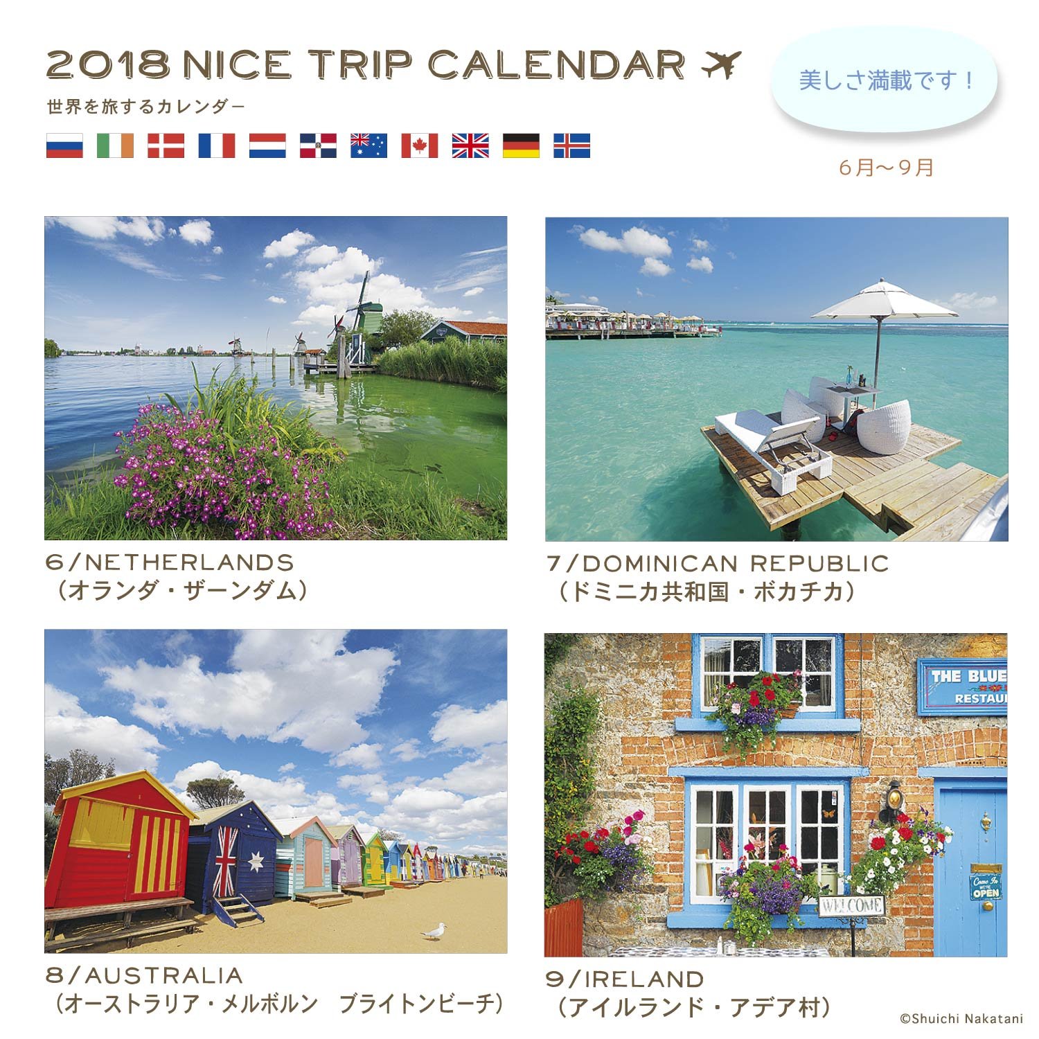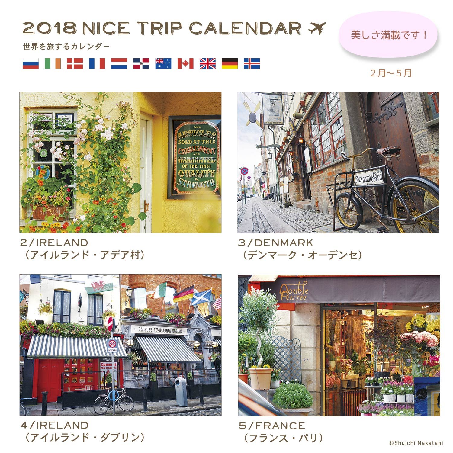 It is a wall-mounted calendar that makes you feel like you are traveling abroad.