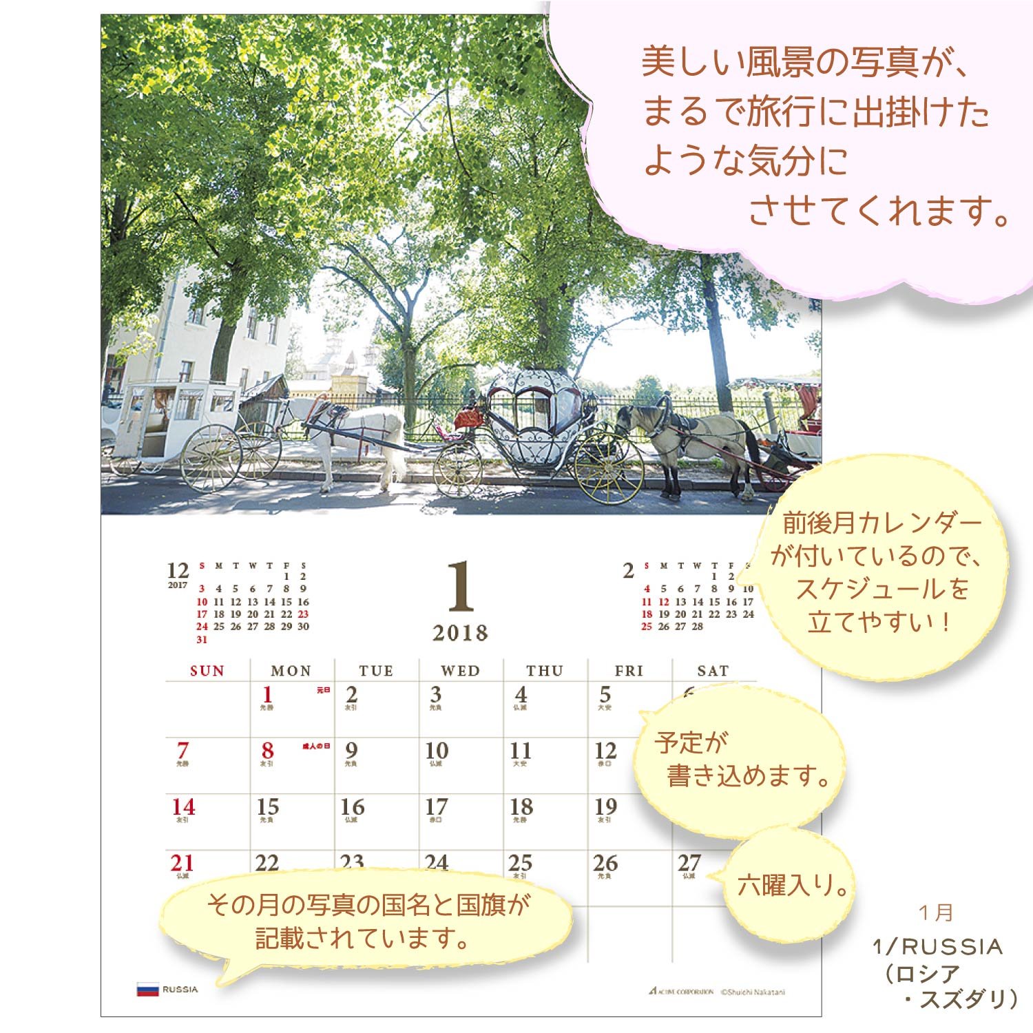 Product name: Active Corporation 2018 calendar wall hanging travel nice trip ACL-42