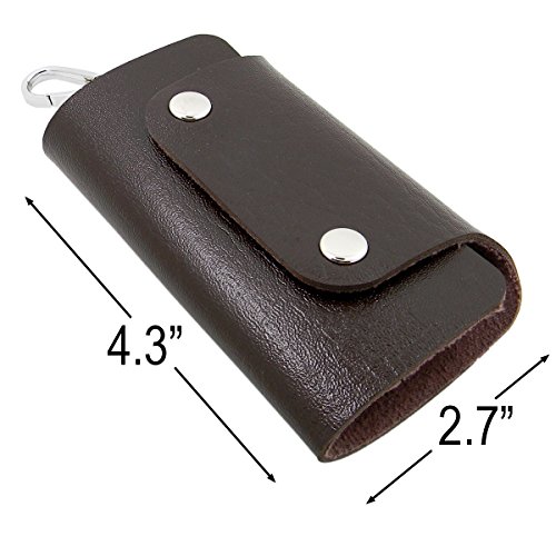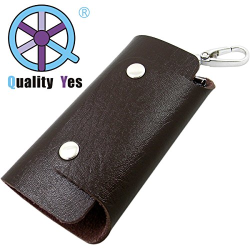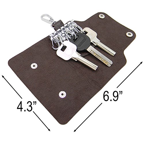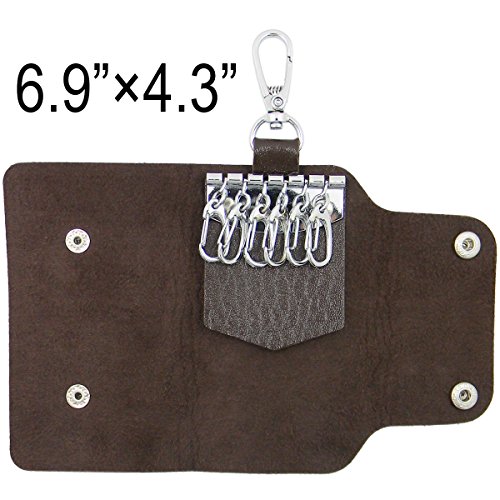 QY Soft Premium PU Leather Portable 6 Clips Key Case Wallet Style Key Holder Keychain Holder Bag Unisex - Noble Chocolate Color