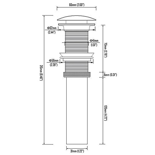 Beelee Bathroom Faucet Vessel Vanity Sink Pop Up Drain Stopper without Overflow, Antique Brass Finish