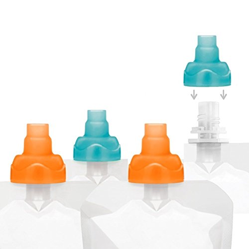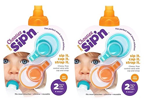 CHOOMEE SIP'N SOFT TOP WITH FLOW CONTROL AND CAP FOR FOOD POUCH FEEDING (2 ORANGE AND 2 AQUA)