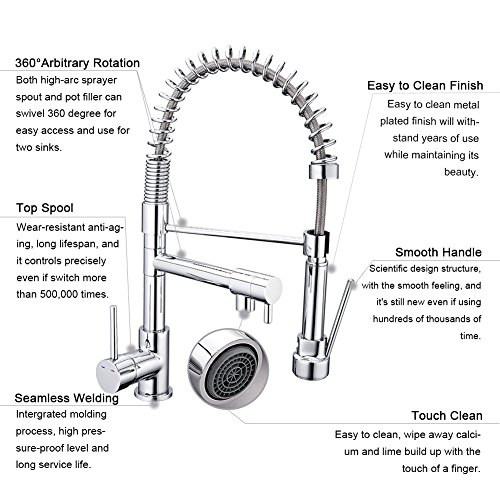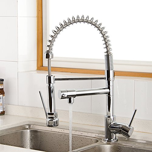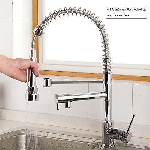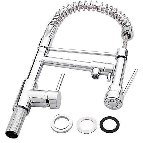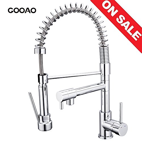 GOOAO Commercial High Arc Spring Kitchen Faucet with Pull Down Swivel Sprayer and Spout Chrome (ZA3240)