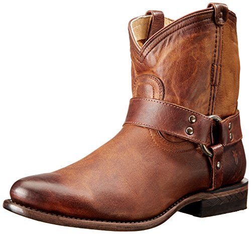 Ankle-high harness boot with scalloped topline and lightly burnished finish