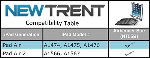 -. Feature : Compatible for Apple iPad Air and iPad Air 2 ONLY. Will not fit iPad Pro, iPad Mini, iPad 4, iPad 3, iPad 2 and iPad first generation. / High quality hard clamshell case with matte finish. Ultra-low profile Bluetooth keyboard, with spacious, optimized key design for comfortable typing experience. / Rotational hinge design and metal foldable handle stand for 360 degree iPad Air orientations and 90 to 150 degree stable tilting angles. / iPad Air keyboard case, iPad Air 2 keyboard case is perfect for home, work or travel use with your iPad Air or iPad Air 2. Due to the recent software updates introduced from Apple's iOS Version 9.0 (and onwards), certain aspects related to the input metho / Purchase the Airbender Star iPad Air keyboard case from the exclusive authorized reseller of New Trent Products - idealpoint. For best, faster, top #1 shipping, select FULFILLMENT BY AMAZON. Be sure to find the official New Trent logo to ensure a 10 mon