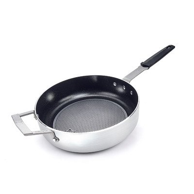 -. Feature : 3.5mm Hard Pressed Aluminum, Non-stick Protection Base Coating Interior, Brushed Steel Lids. / Brushed Aluminum plus dishwasher-proof lacquer Exterior, Riveted Stainless Steel Handles. / Stick Handle with soft-touch silicone grip. Material: Hard Pressed Aluminum. / Non-stick release properties. Resistance to abrasion. Easy clean properties. / Longer lasting performance. Color: Silver. Country of origin: Italy.