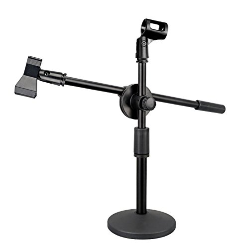 -. Feature : Extremely versatile, you can regulate the stand arm to the angle or length as you like / Very heavy and soild iron stand base keeps the stand from falling over / Low-profile boom stand, perfect for micing kick drums, guitar amps, top/bottom snare or more / Adjustable stand allows a height range of 12"-17" / 31cm-43cm and extendable boom ranges from 2.4"-11.4" / 6cm-29cm / Constructed with quality iron, solid and durable. *NOTE: Microphone and Cables in the pictures (NOT INCLUDED)