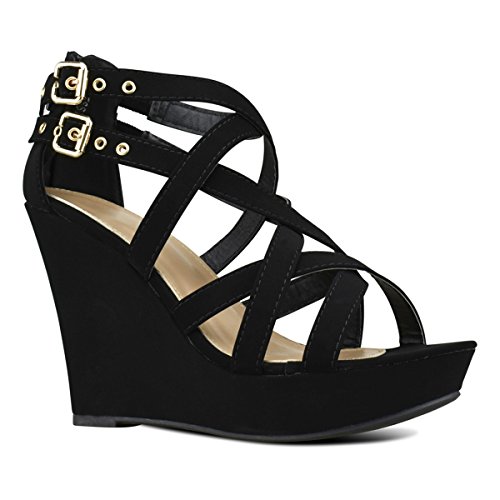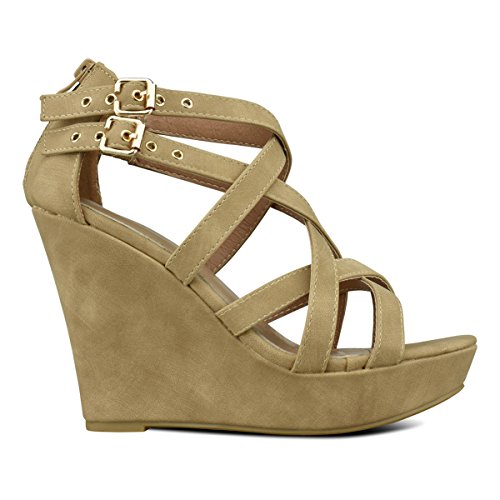 | (Premier Standard)/Women's/Sandals/DIRECT FROM USA/Premier Standard Women's Open Toe Strappy Platform High Heel Wedge Sandals - Summer Women Shoes |