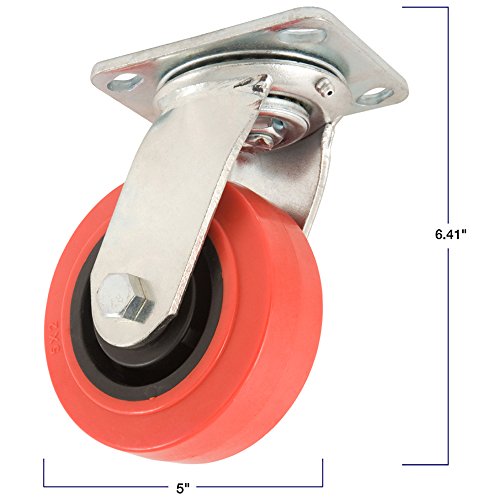 Polyurethane Caster Wheel with Swiveling Top Plate - 5-Inch - 750 lb. Load Capacity - for Use on Hard Surfaces such as Concrete
