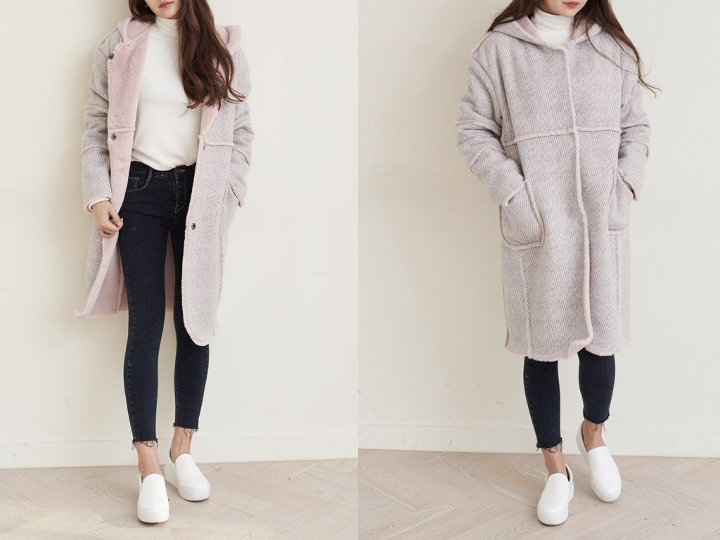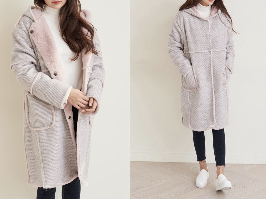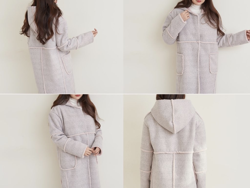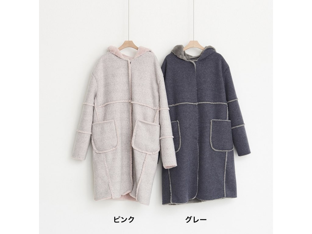 「もこもこ」っとした、ダッフルコートです。品のよさと抜け感を兼ね備えたデザインとなっており、ほどよいルーズ感を演出できます。「クラシカル」や「トラッド」がキーワードの今シーズン、『ダッフルコート』が冬のトレンドアイテムとして注目を集めていまね。1.基本情報色:2色展開(ピンク/グレー)サイズ:Free素材:ポリエステル50%、レーヨン50%製造国:korea2.サイズ情報肩幅:57cm 身幅(胸断面):56cm 腕の長さ:58cm 着丈(前):95cm(サイズは計る方法に応じて±2〜3cmの誤差があります。ご了承お願い致します)モデル着用サイズ:F※着用モデル(163cm、体重47kg、足のサイズ24.5cm)3.その他の情報厚み:厚い透け感:なし伸縮性:なし裏地:あり洗濯方法:ドライ(クリーニング)[注意事項]お取り寄せ商品は、海外より仕入れるため納品まで約10日前後いただきます。また店舗でも販売しており、在庫切れになる場合もございます。ご了承お願い致します。
