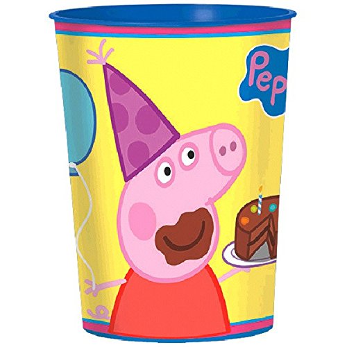 - Sturdy plastic cup featuring loveable little piggy Peppa with chocolate cake all over her smiling face