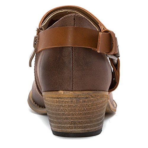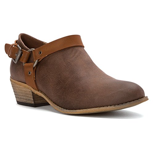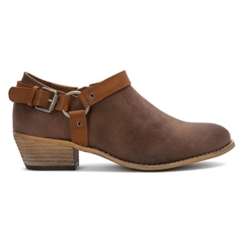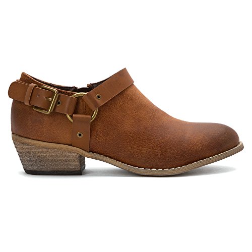 Product DescriptionWestern inspired ankle bootie with harness detail0