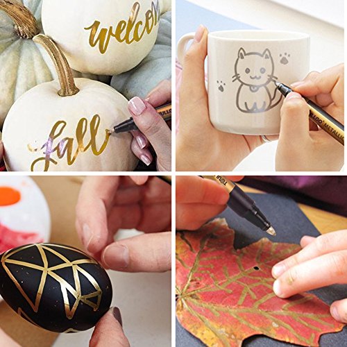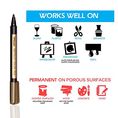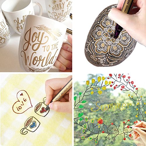 - 【STRONG FUNCTION】Great colors,Rich metallic color Marks on virtually any surface: metal, pottery, wood, rubber, glass, plastic, stone,paper and metal etc.surface, Including dark and colored paper results are vivid and bright,not just glittery paper,Work perfect on dark surfaces and paper.