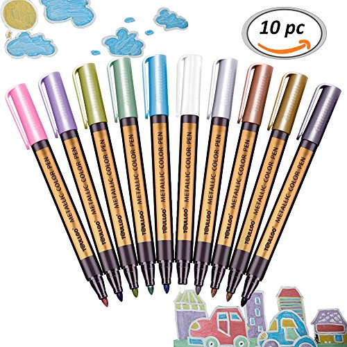 - 【RICH COLOR AND SHINY】 Metallic Markers add an extra sleek sheen to homemade cards crafts and colorful art projects. Metallic marker pens ideal for arts and crafts, DIY projects, scrap books and more, makes a permanent impression on light and dark surfaces.
