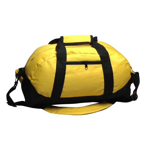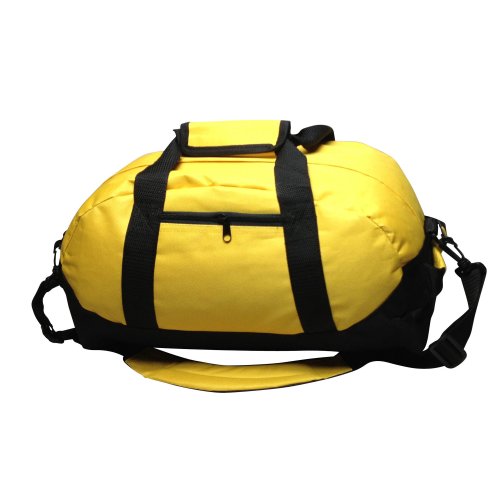Studio : DALIX Publisher : DALIX Binding : Misc. Product Description This bag is 18" long, perfect for airplane rides, travel, luggage, sports and gym use. This versatile bag has it all, its lightweight and comes with 4 different two tone colors. Its good sized and two toned and has a removeable shoulder strap. MATERIAL: 600D Polyester. SIZE: 18" X 9" X 9". IMPRINT AREA: 5" X 5". FEATURE: Zippered main compartment, w/ zippered front pocket, top velcro handle, two side handles removable shoulder strap. COLORS: Royal/Black, Red/Black, Gold/Black, Dark Gray/Black. 0