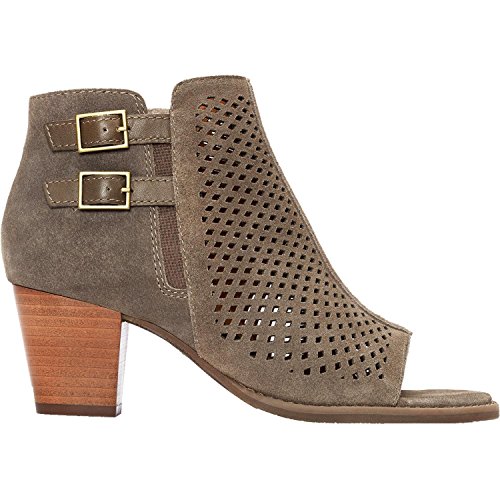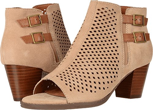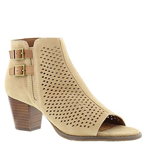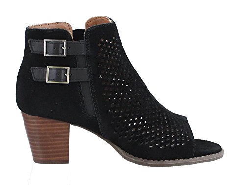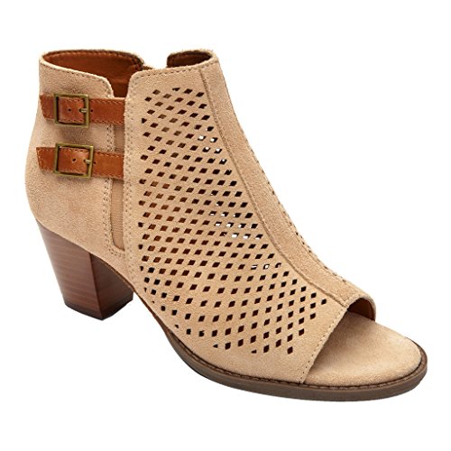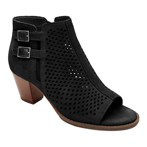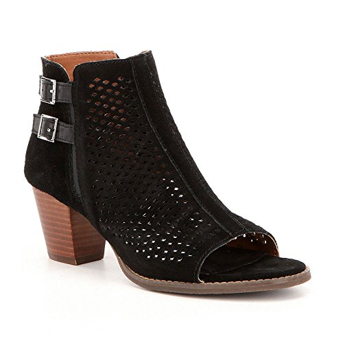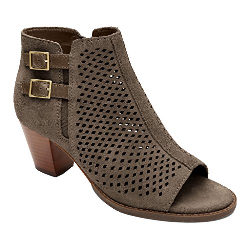 Product Description Make a seamless transition from winter to spring with the Chryssa open-toe ankle bootie. Decorative perforations and a double-buckle detail adorn the upper. The outer side has an elastic gore insert for a comfortable fit the inner side a zipper for easy on-off. 0